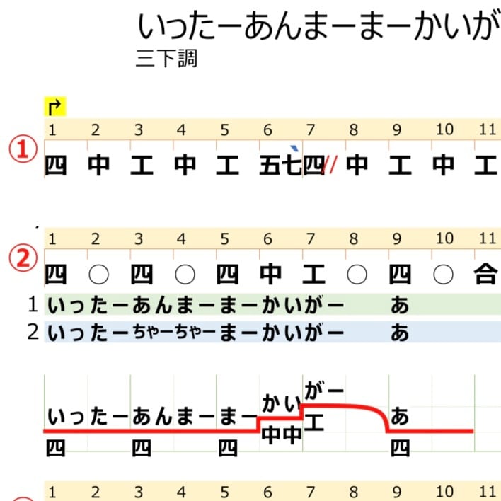 沖縄/三線/工工四/声楽譜/横書き/歌詞/楽譜/音楽教材/歌唱練習/民謡