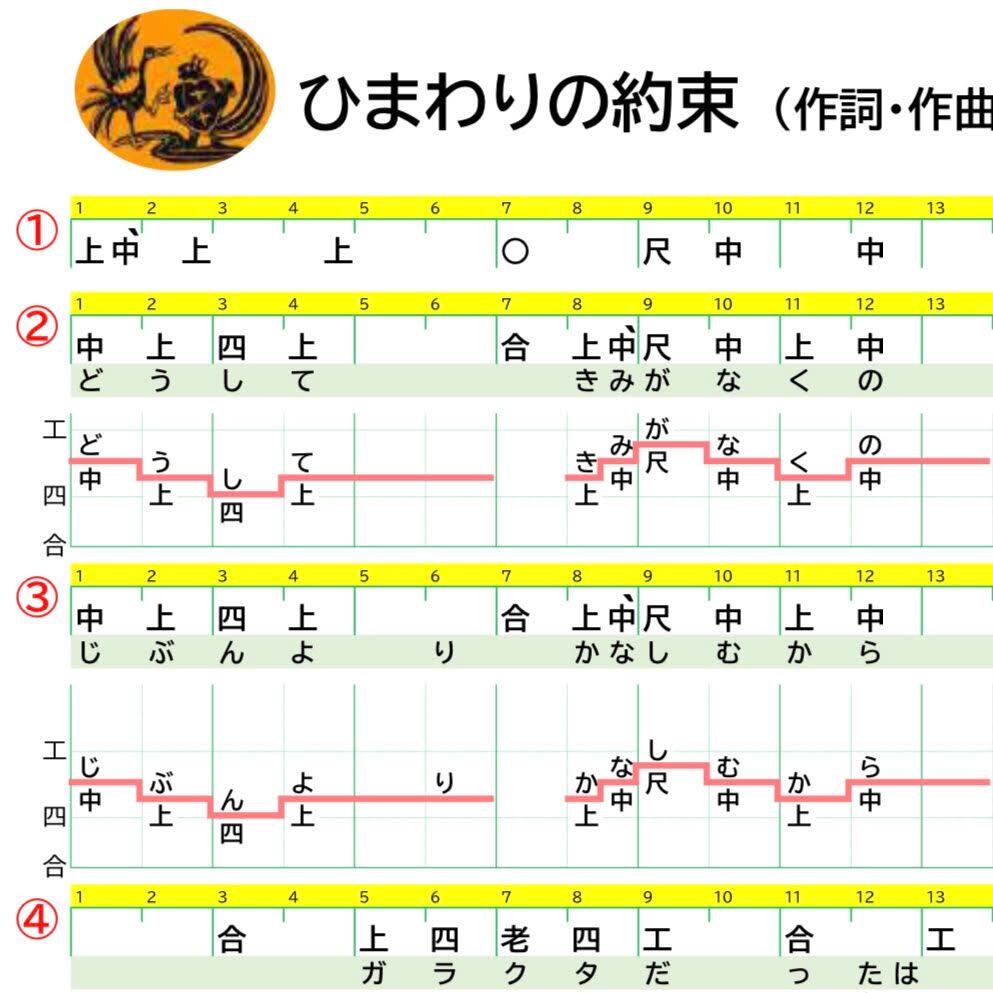 沖縄/三線/工工四/声楽譜/横書き/歌詞/楽譜/音楽教材/歌唱練習/アニメ/夏