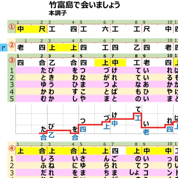 沖縄/三線/工工四/声楽譜/横書き/歌詞/楽譜/音楽教材/歌唱練習