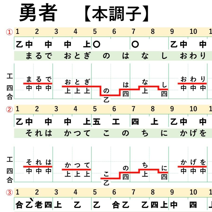 葬送のフリーレン主題歌・YOASOBI『勇者』のTV Size本調子・声楽譜付きの横書き工工四です。